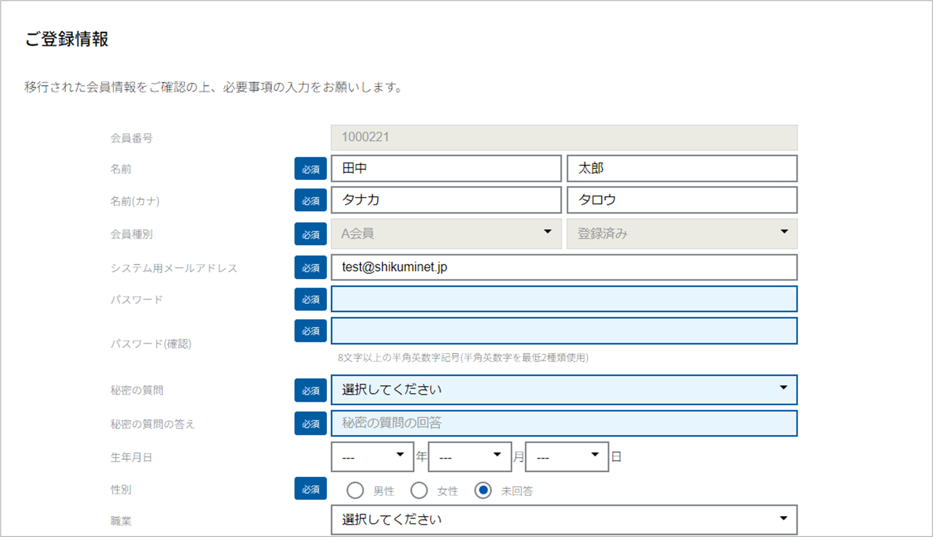 ③移行された会員情報をご確認の上、必要事項の入力をお願いします。
